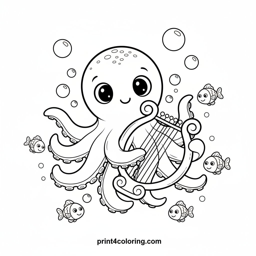 Octopus's Enchanted Underwater Harp Concert Coloring Page