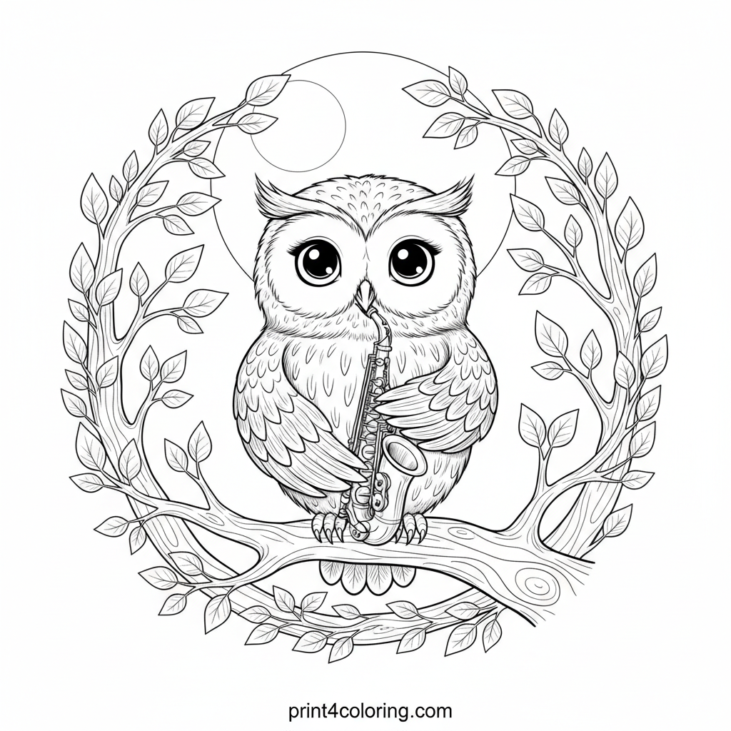 Owl's Moonlight Saxophone Serenade Coloring Page