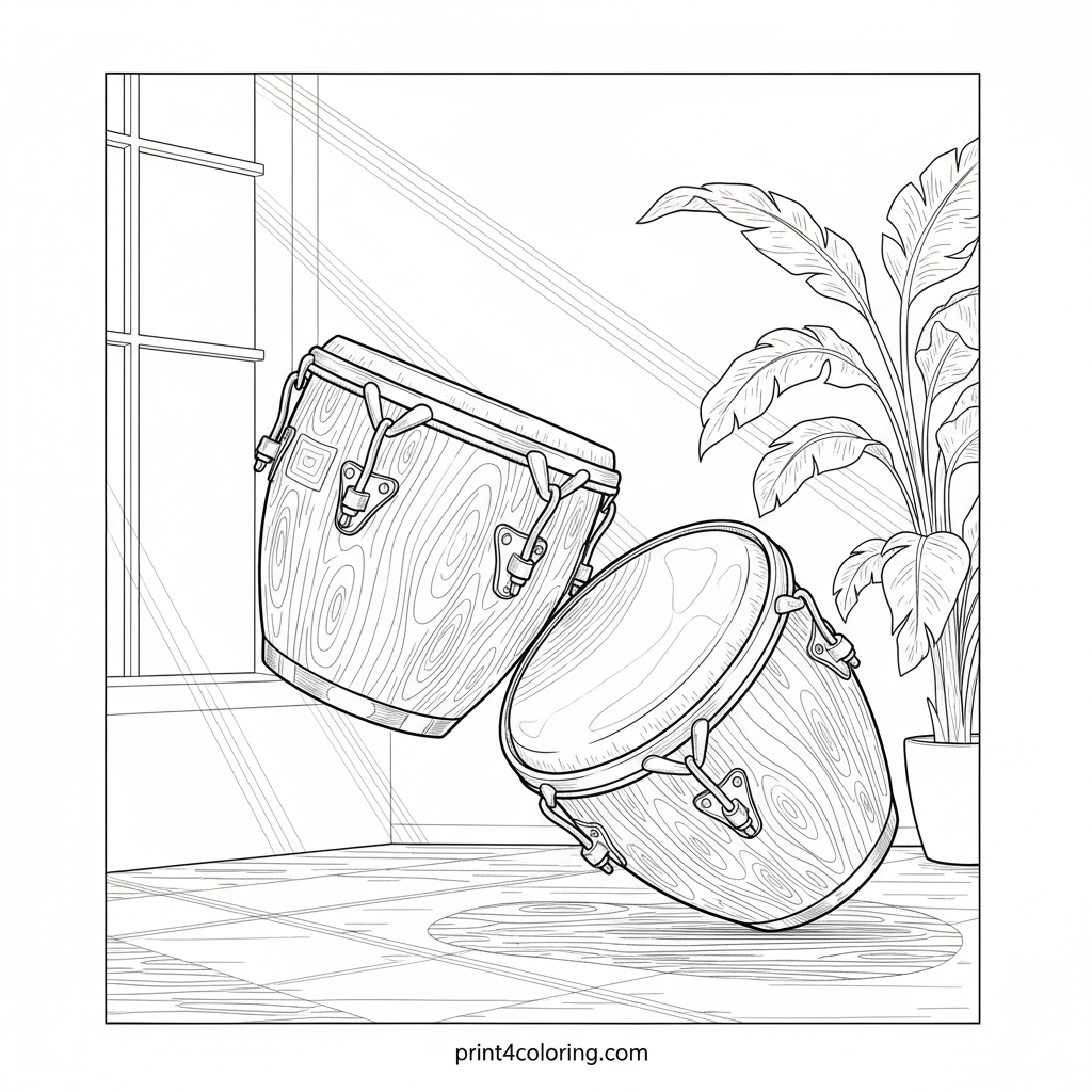 #vintage#bongos#drums#music#studio#sunlight#musical-instrument#percussion#coloring-page#printable