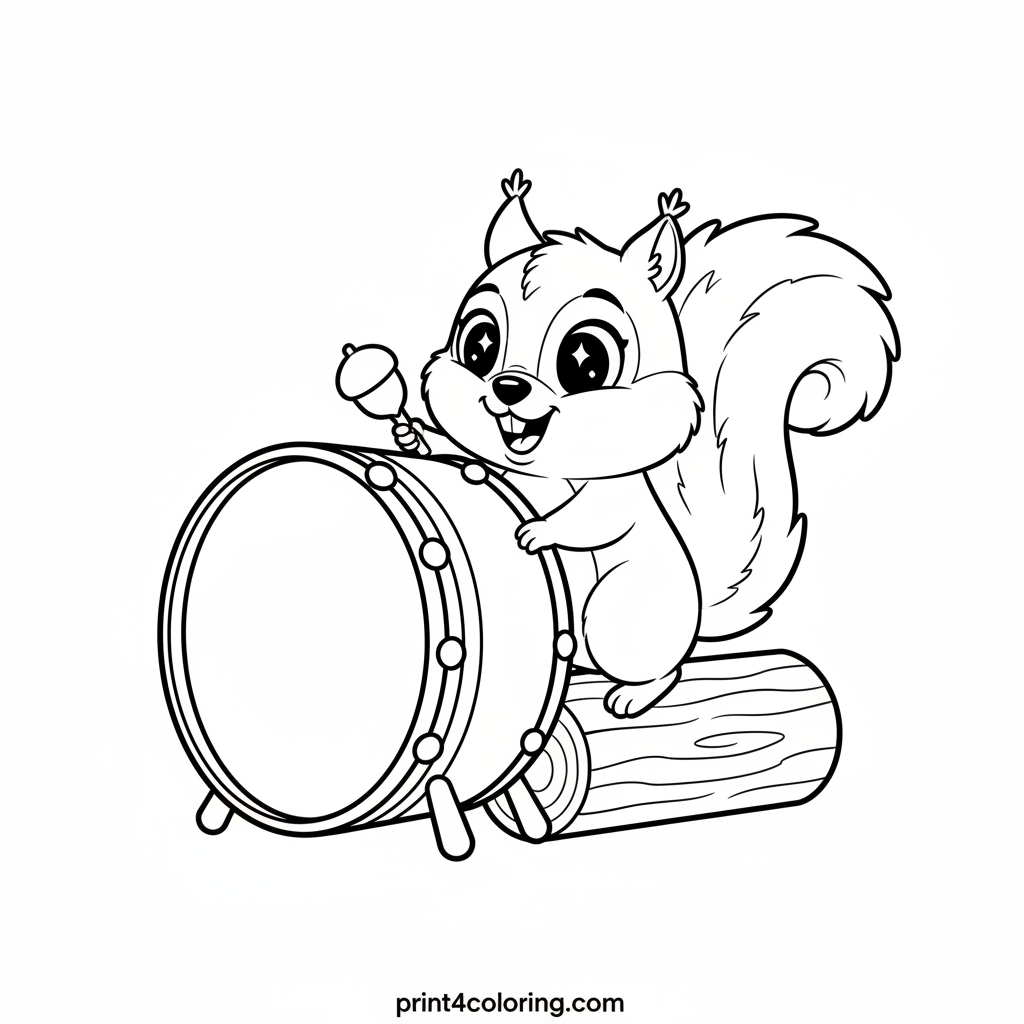 Silly Squirrel's Big Drum Adventure Coloring Page