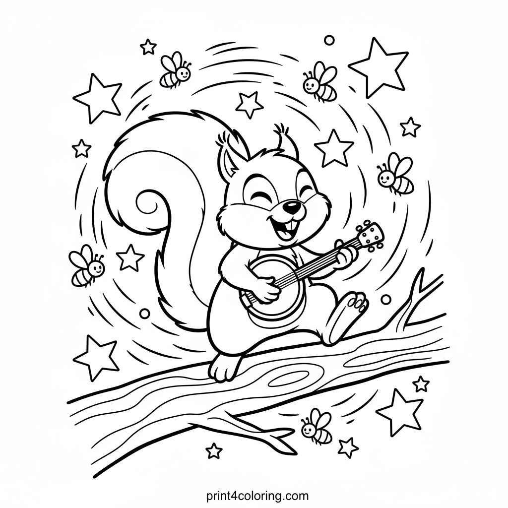 Star-Strumming Squirrel's Magical Serenade Coloring Page