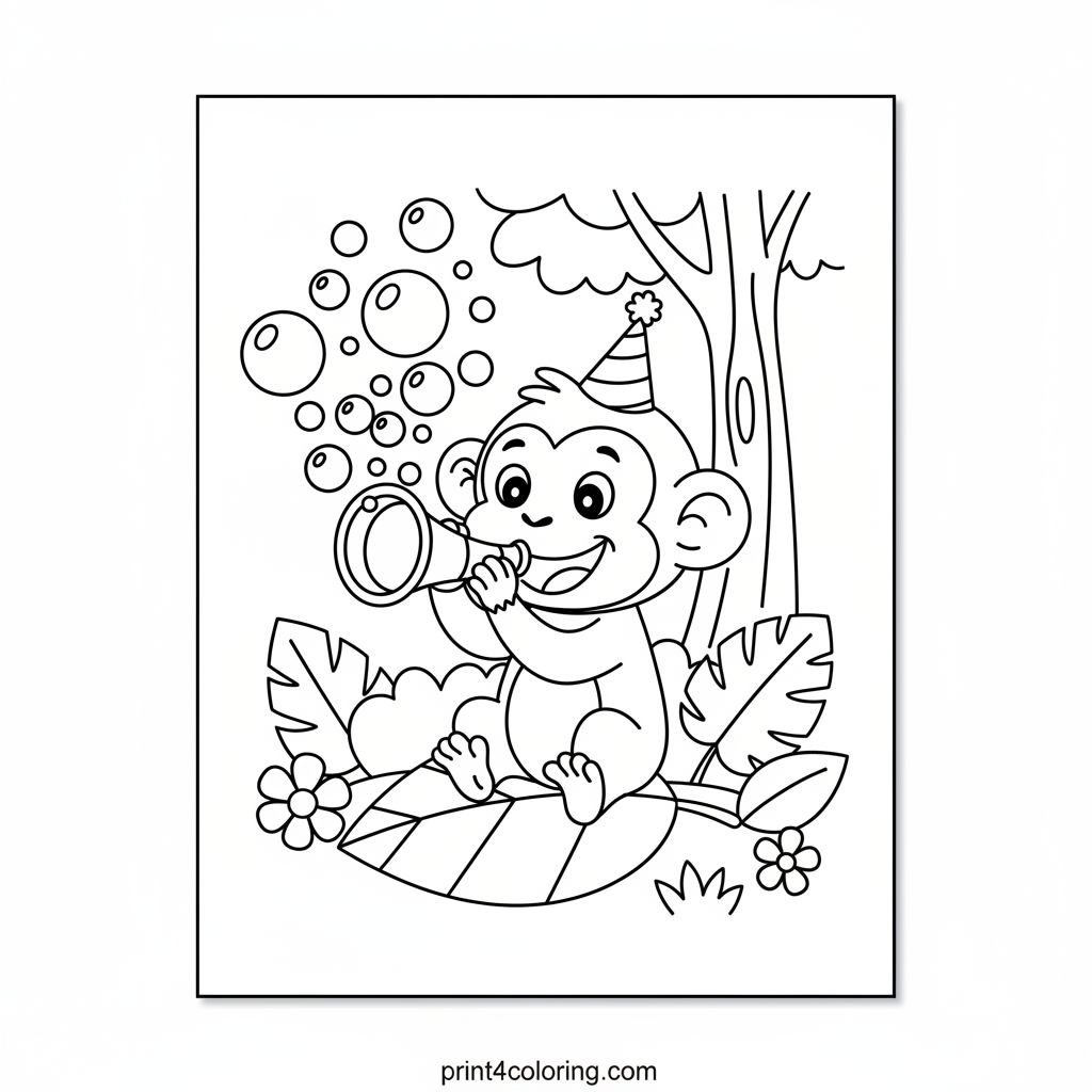 The Bubble-Blowing Trumpet Monkey Coloring Page