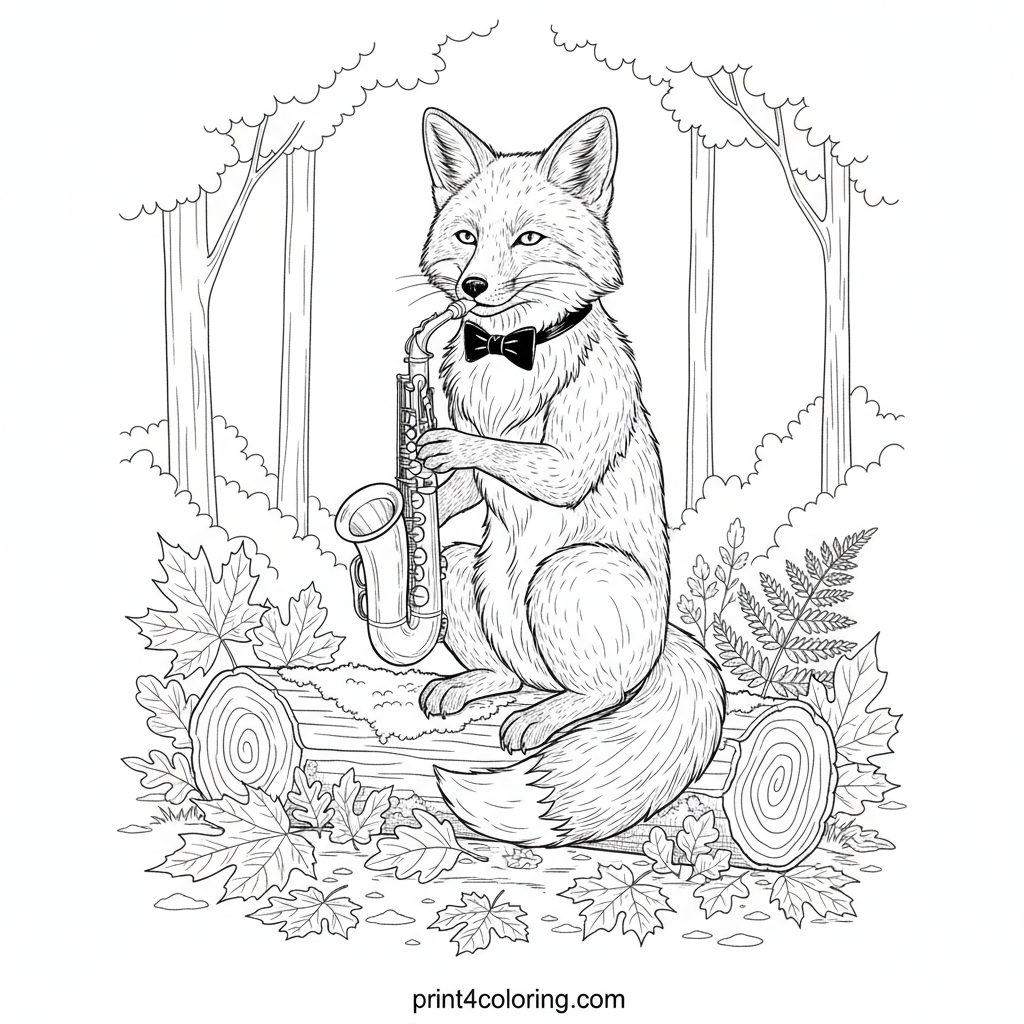 #fox#saxophone#forest#autumn#music#animal#nature#woodland#coloring-page#printable