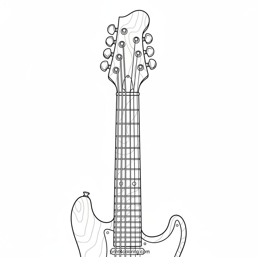 Dive into the detailed world of music with this expert coloring page! Unleash your artistic flair on a classic electric guitar, featuring its sleek wooden body, shiny chrome hardware, and delicate strings. Imagine the melodies as you bring this beautiful instrument to life with your favorite colors, highlighting every intricate detail of its craftsmanship.