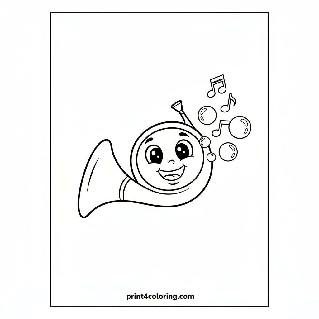 Tooty the Happy French Horn's Joyful Toot! Coloring Page