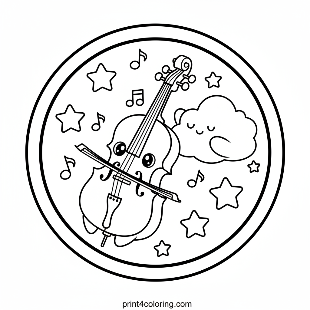 Whimsical Cello's Starry Serenade Coloring Page