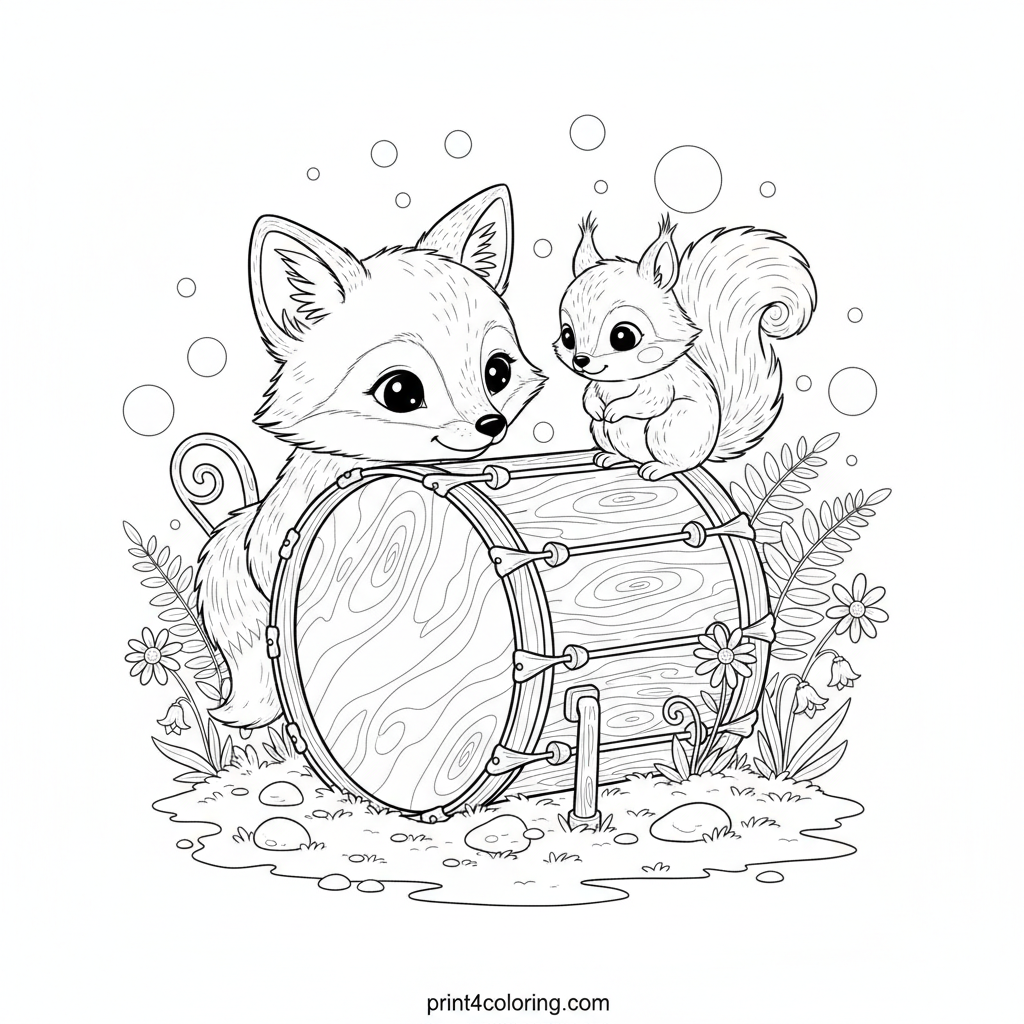Woodland Wonders: Forest Friends Discover the Drum Coloring Page
