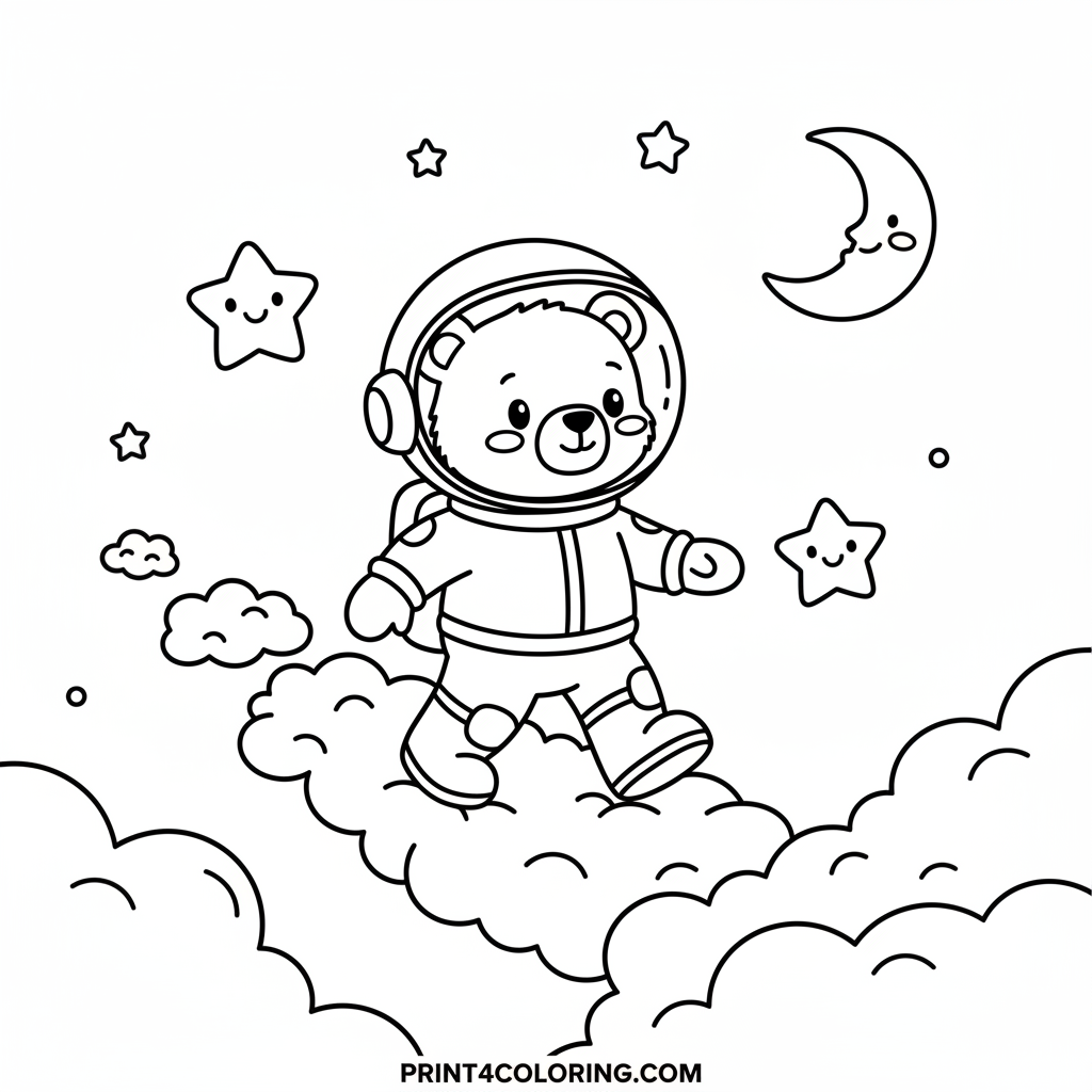 Astronaut Bear's Cloud Kingdom Adventure Coloring Page