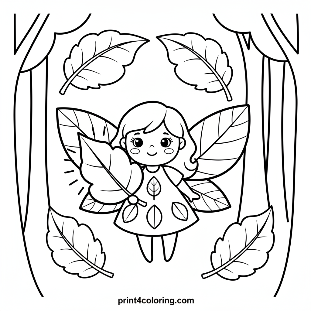 Autumn Fairy's Enchanted Leaf Coloring Page