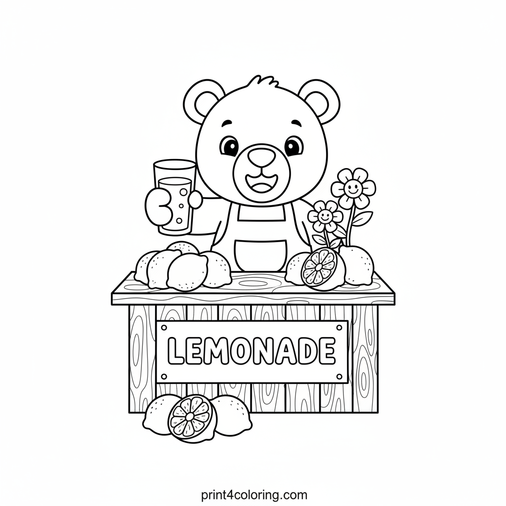 Bear's Zesty Lemonade Stand Adventure Coloring Page