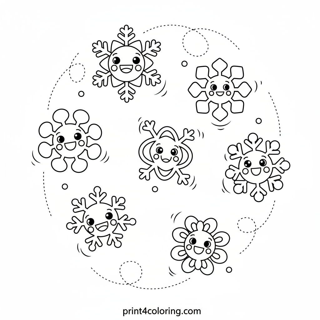 #snowflakes#winter#dance#simple#cold#coloring-page#printable