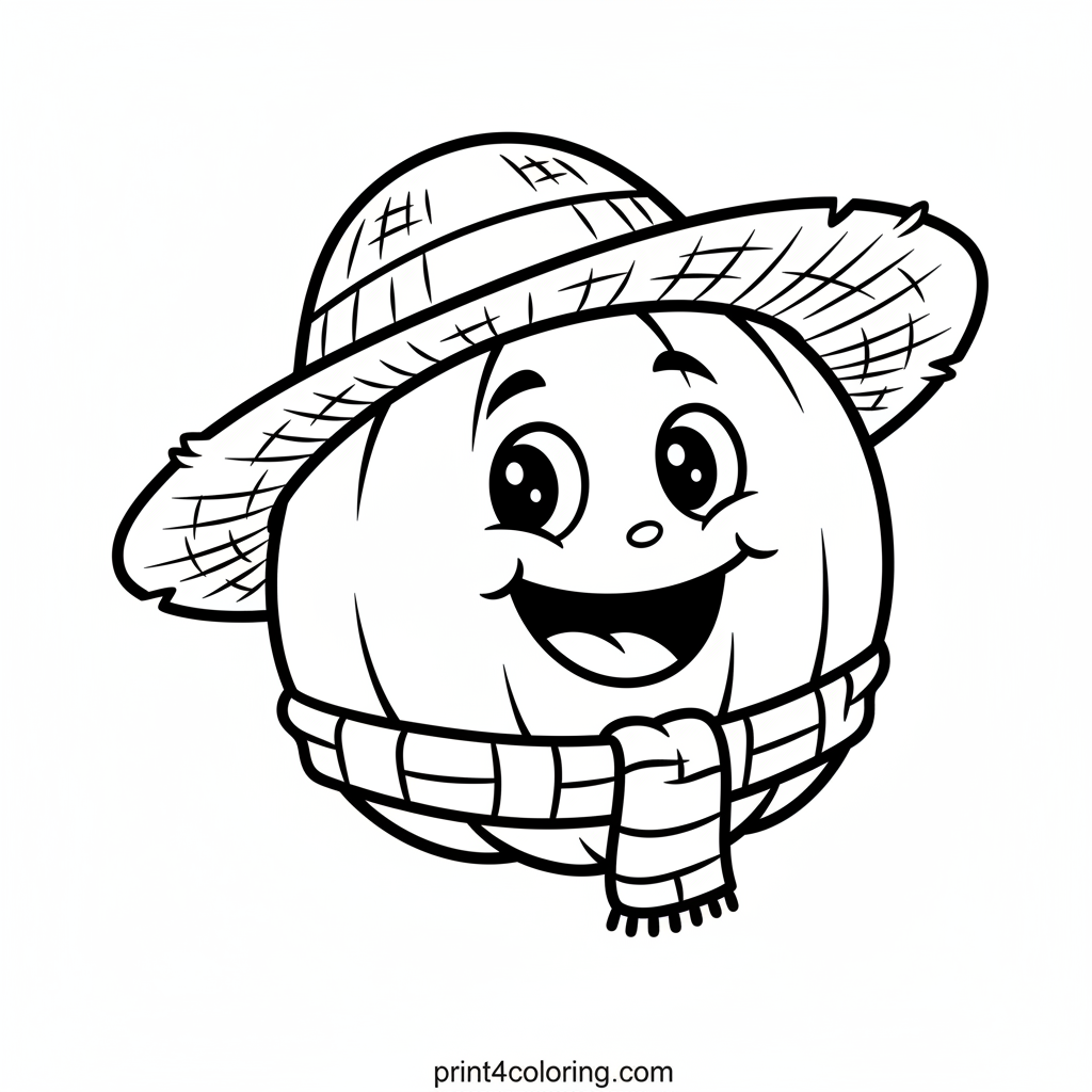 Get ready for some autumn fun with our Giggling Scarecrow Pumpkin Pal! This plump, happy pumpkin is having a blast, sporting a floppy straw hat and a cute, colorful scarf. With a playful, surprised expression, this friendly gourd is sure to bring smiles as you bring its cheerful scene to life with your favorite colors.