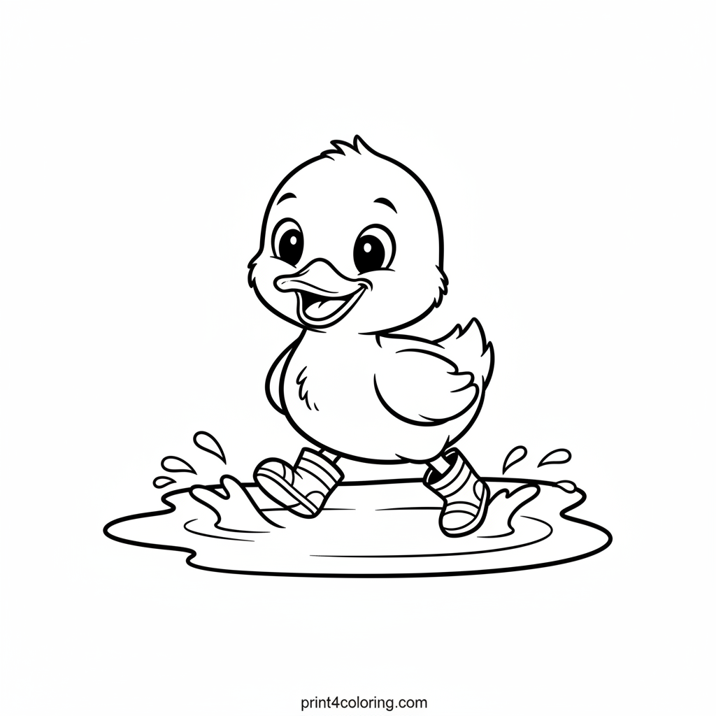 Splash into fun with our adorable, chubby duckling! With big, happy eyes and tiny rain boots, this little one is having a blast. Joyfully splashing in a large puddle, it sends up gentle drips of water. A perfect scene for young artists to fill with bright, cheerful colors!