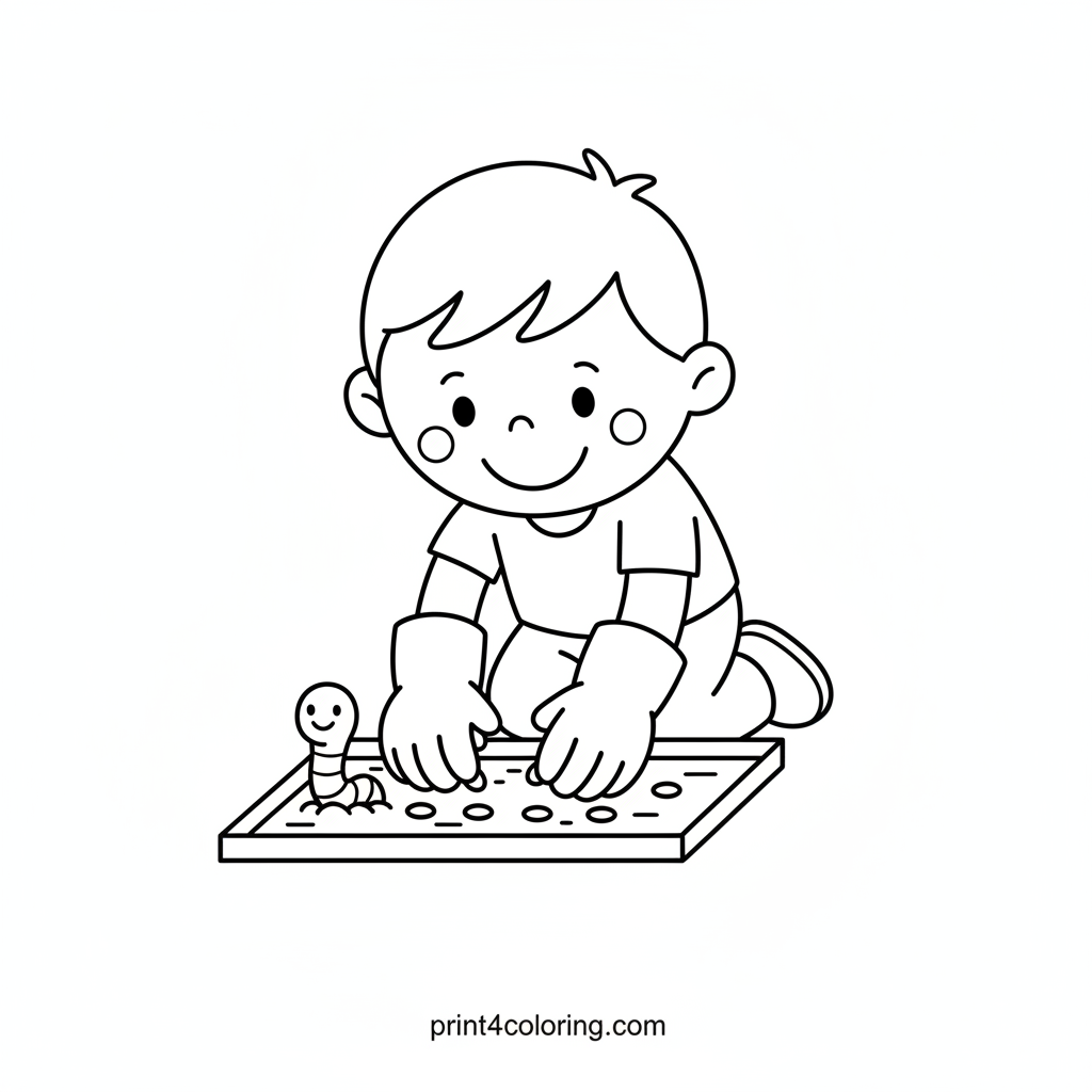 Meet a cheerful little gardener, beaming with a big smile and wearing bright gloves, as they carefully tuck tiny seeds into the warm earth. A friendly worm peeks out from the soil, excited to meet its new plant friends. This delightful scene captures the joy of planting and the magic of watching nature grow.