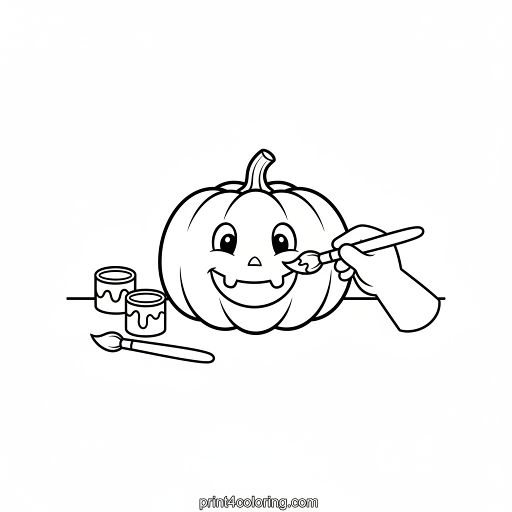 Get ready for some autumn fun! This delightful page shows a small hand (or a cute paw!) carefully painting a funny, happy face onto a medium-sized pumpkin. Surrounded by brushes, paints, and other simple art supplies, it's a perfect scene for creative coloring and imagining your own pumpkin masterpiece.
