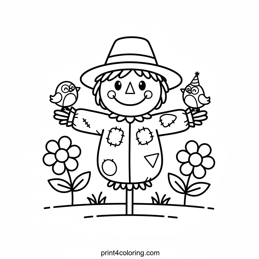 Happy Scarecrow's Sunny Garden Party Coloring Page