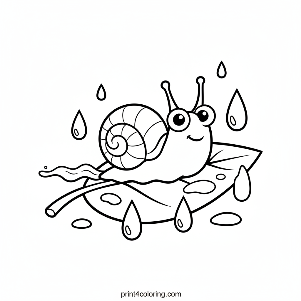 Join our happy snail on an exciting rainy day adventure! With big, friendly eyes and a beautiful swirly shell, this little friend is slowly exploring a giant wet leaf. Watch the tiny trail it leaves behind and spot the big raindrops. Get ready to add vibrant colors to this charming scene!