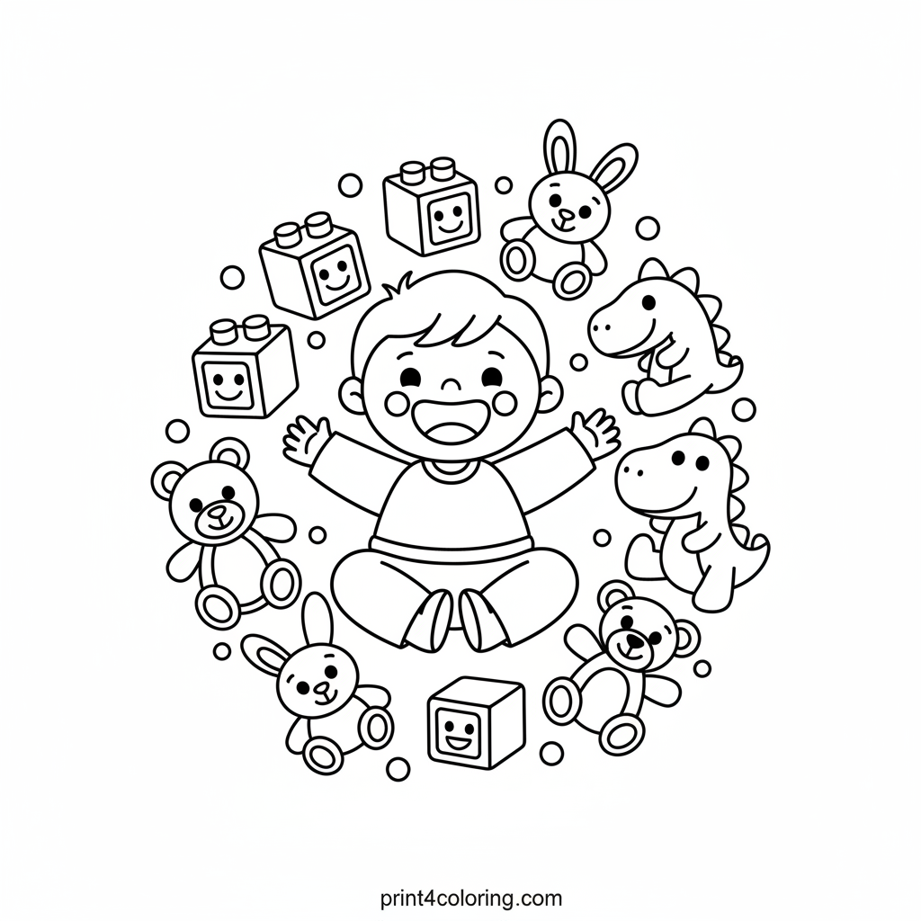 - 4🌈 **Cozy Room Colors** - Choose warm, inviting colors for the background elements, like a soft yellow wall or a comfy blue rug, to make the toy room feel extra cozy and fun.