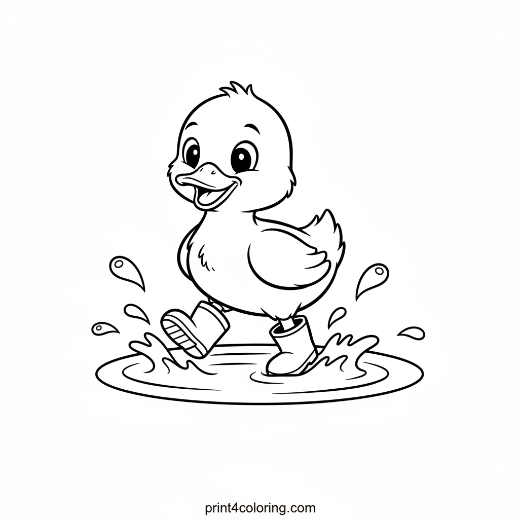 Puddle Playtime Duckling Coloring Page