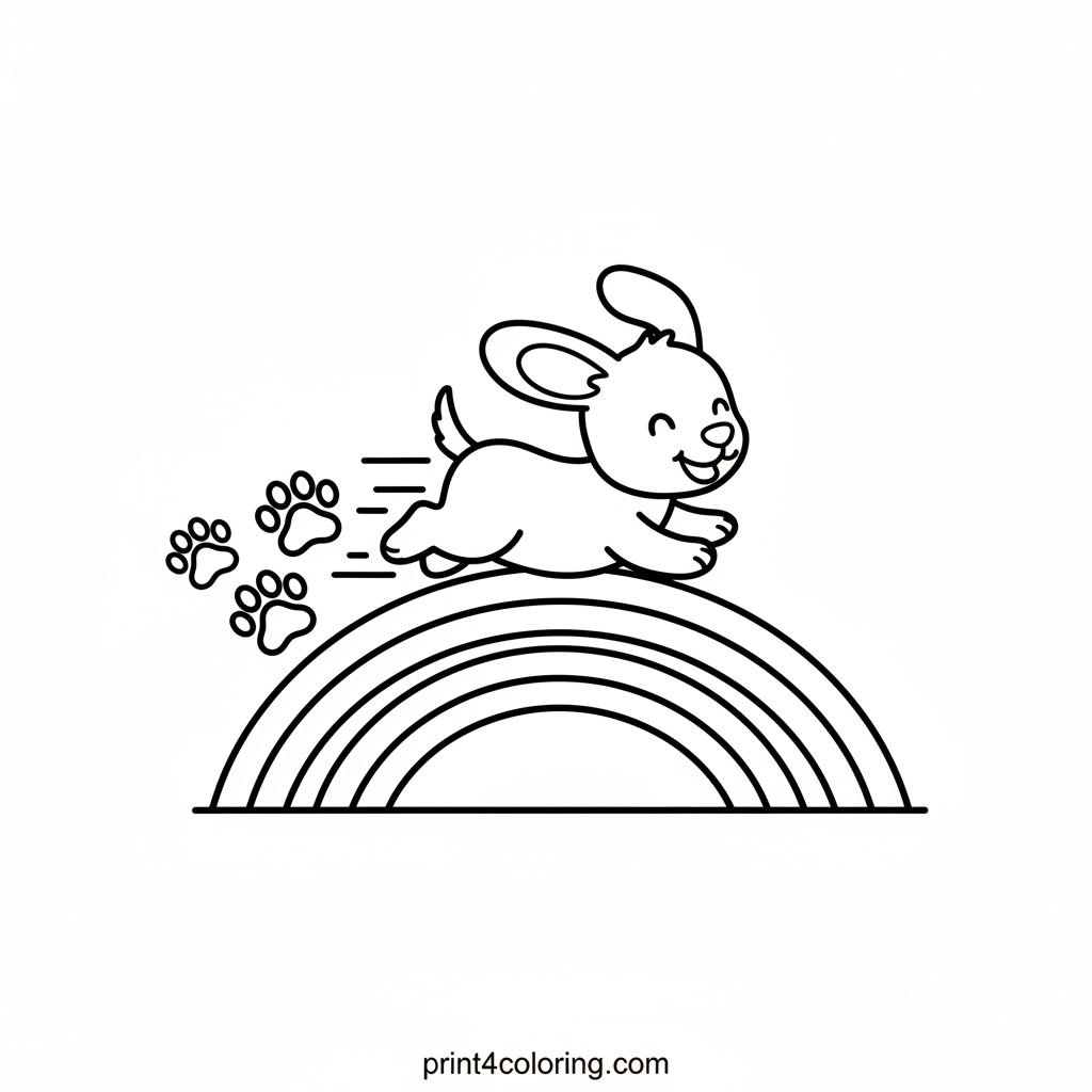 Get ready to color a burst of happiness! This adorable, floppy-eared puppy is having the time of its life, zooming at top speed along a brilliant rainbow. Imagine the colorful blur of paw prints it leaves behind! Bring this energetic scene to life with your brightest crayons and markers. A truly joyful adventure awaits your creative touch.