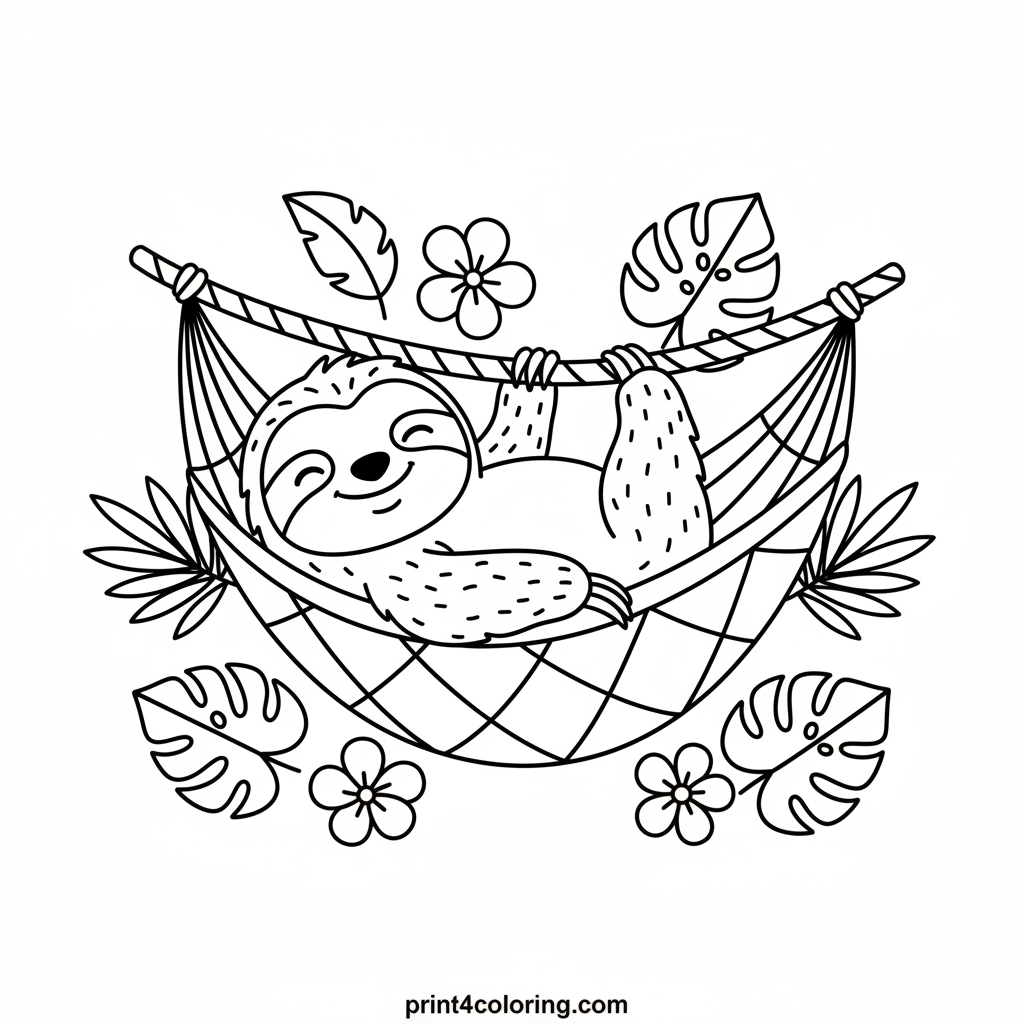 #sloth#hammock#jungle#cute#animal#relaxing#easy#coloring-page#printable