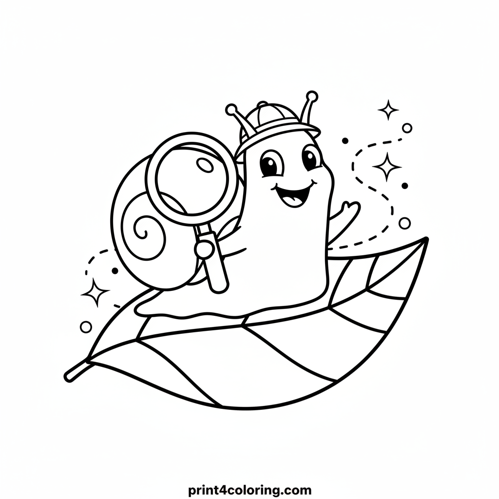 Join our goofy snail friend on a super slow but exciting adventure! He's wearing a tiny explorer's hat and using a giant magnifying glass to discover new wonders on a big green leaf. Watch his sparkly trail as he makes his way across the leaf, exploring every tiny detail. Get ready to color this determined little explorer!