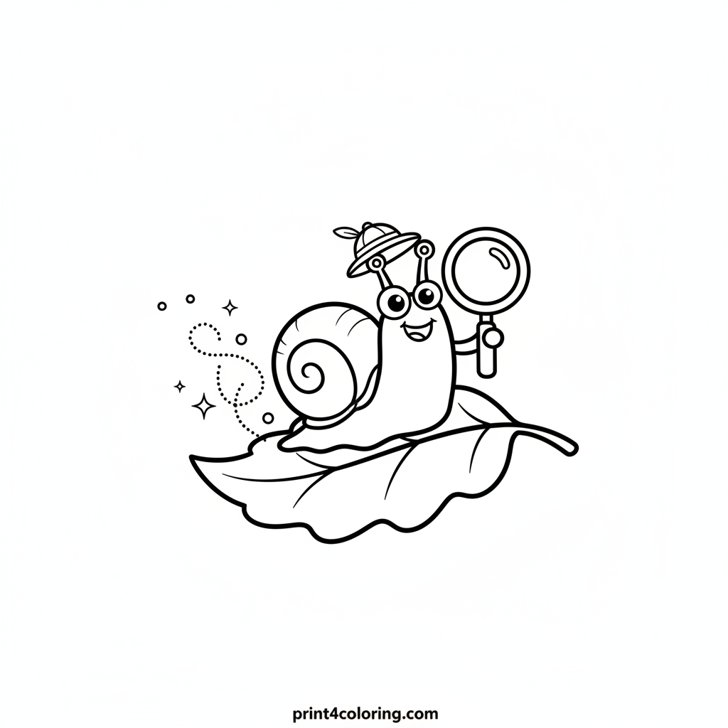 Join our big, goofy snail on an exciting, slow-motion journey! Wearing a tiny explorer's hat and clutching a giant magnifying glass, this determined little friend is slowly trekking across a huge green leaf, leaving a magical, sparkly trail behind. Get ready to add vibrant colors to this adorable adventurer's grand quest!