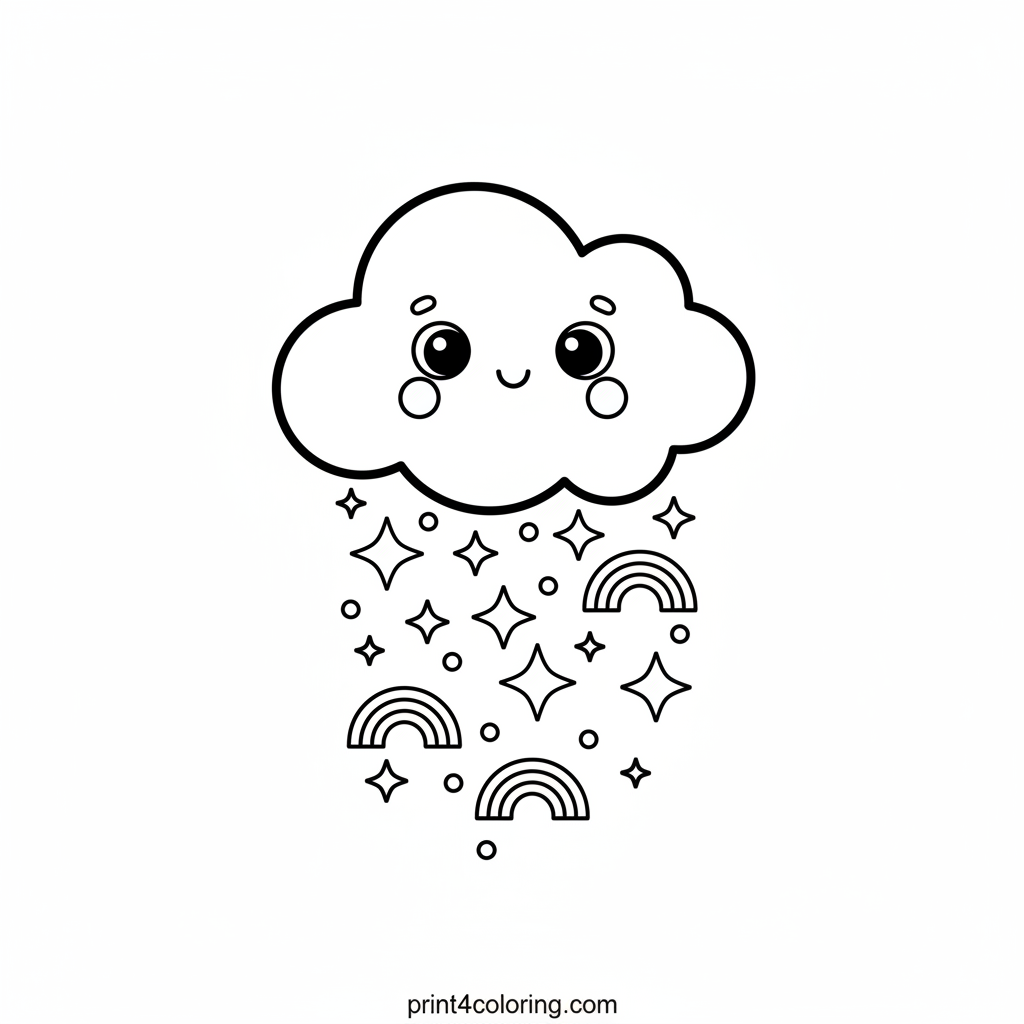 Smiling Cloud's Sparkle & Rainbow Rain Coloring Page