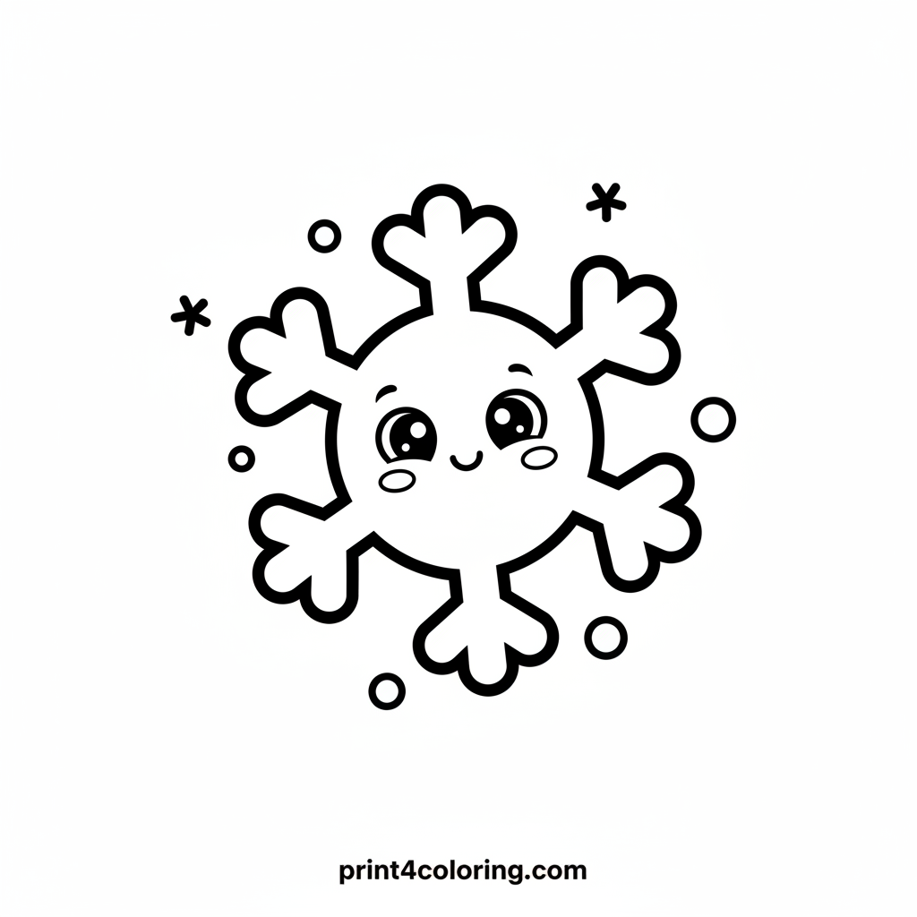 Meet your happy little snowflake friend! This large, cheerful snowflake has a sweet smile and big, kind eyes, gently floating in the air. Imagine it dancing softly through the winter sky, spreading joy and frosty magic. Use your favorite colors to make this friendly snowflake sparkle and shine!