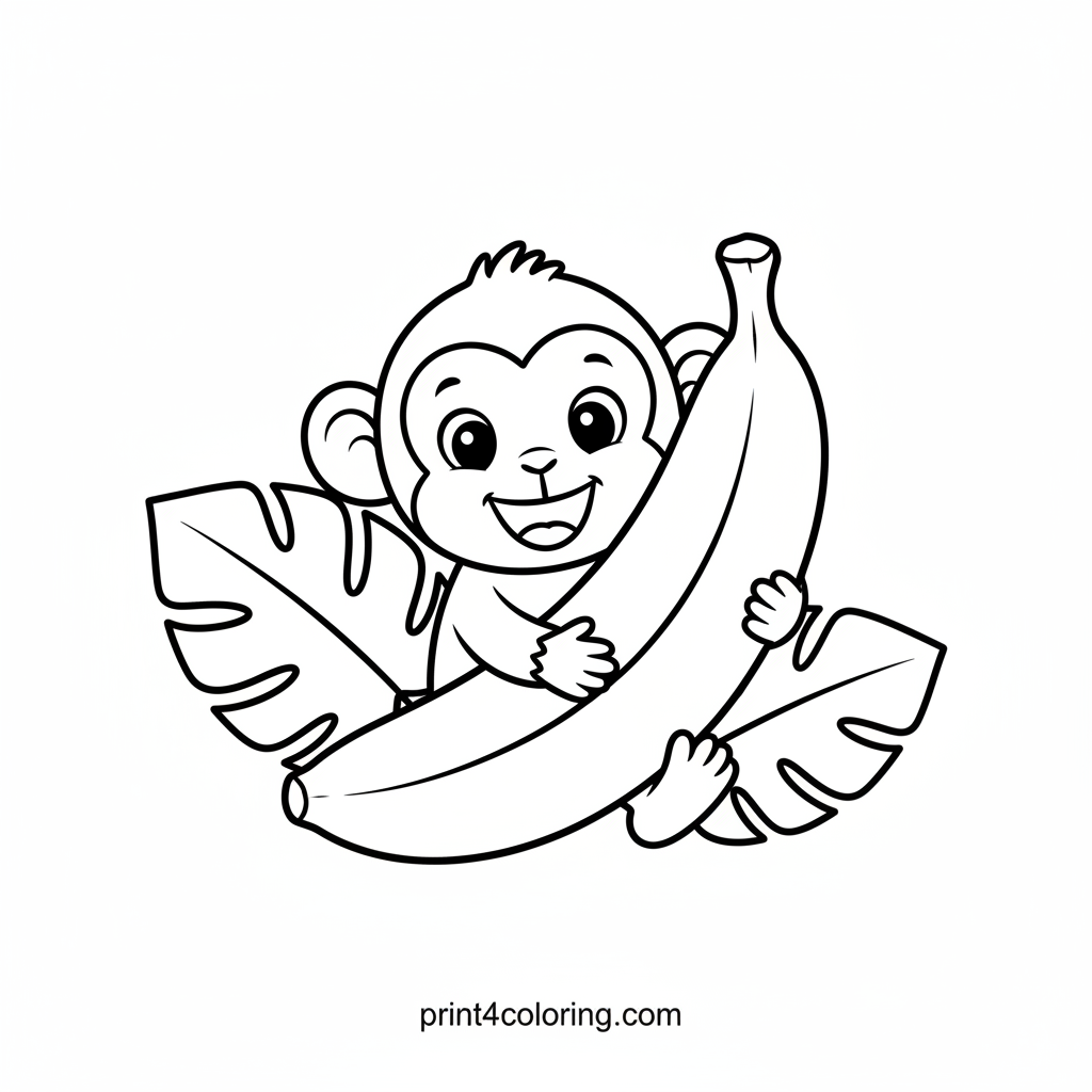 Dive into the jungle with this super cute baby monkey! With big, curious eyes, this little primate is giving a giant, ripe banana the biggest hug. Lush, friendly jungle leaves surround our cozy friend, creating a peaceful scene perfect for your colorful imagination. Get ready to add vibrant hues to this adorable jungle moment!