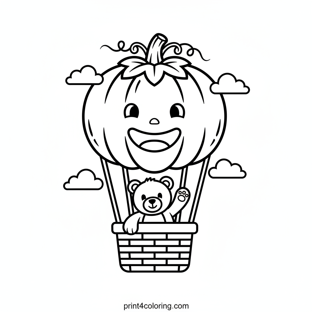 Teddy's Magical Pumpkin Sky Ride Coloring Page