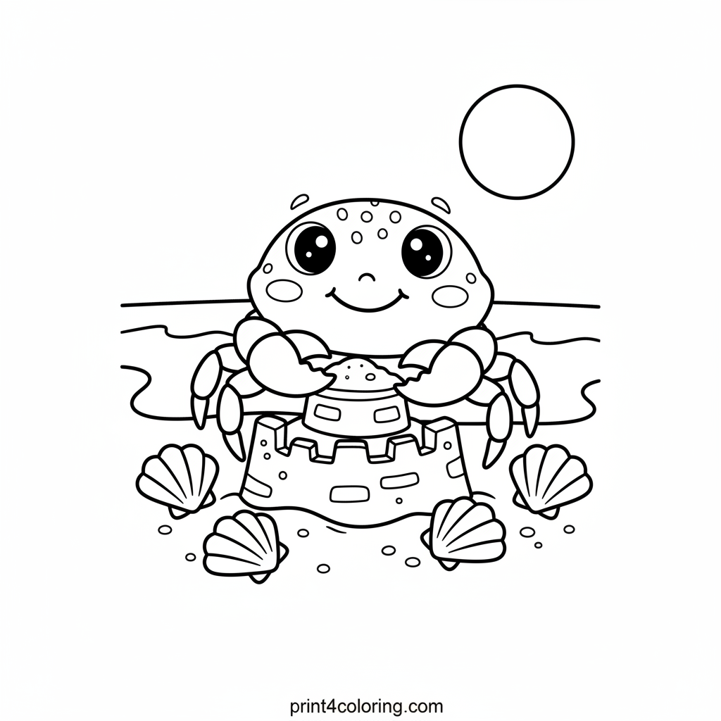 Tiny Crab's First Sandcastle Masterpiece Coloring Page