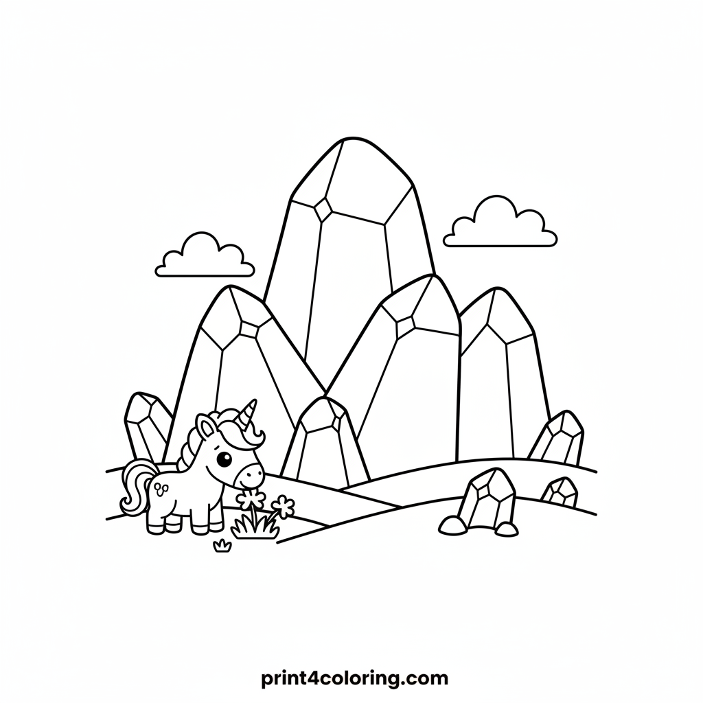 Unicorn's Sparkling Crystal Mountain Coloring Page
