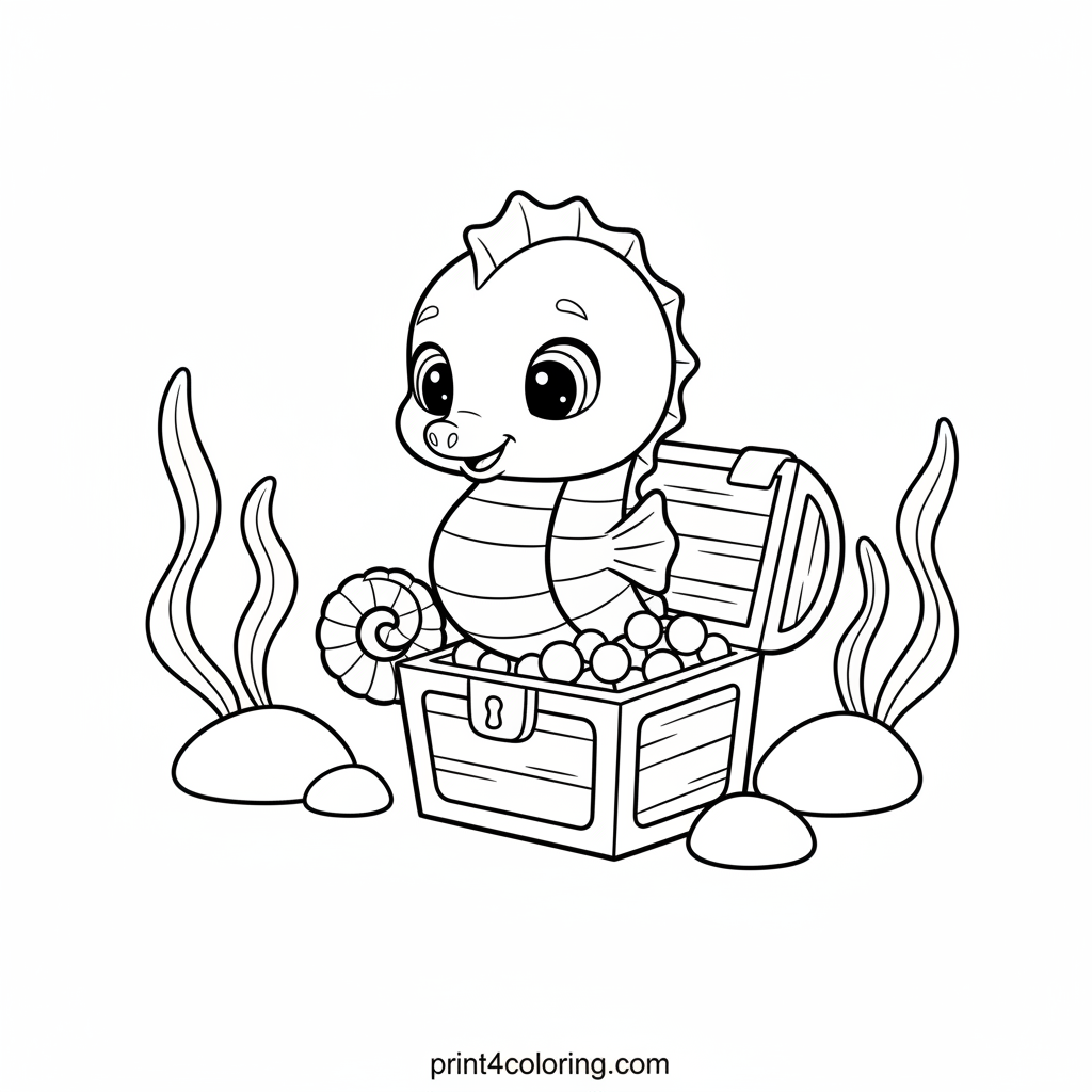 Baby Seahorse's Sparkling Treasure Coloring Page