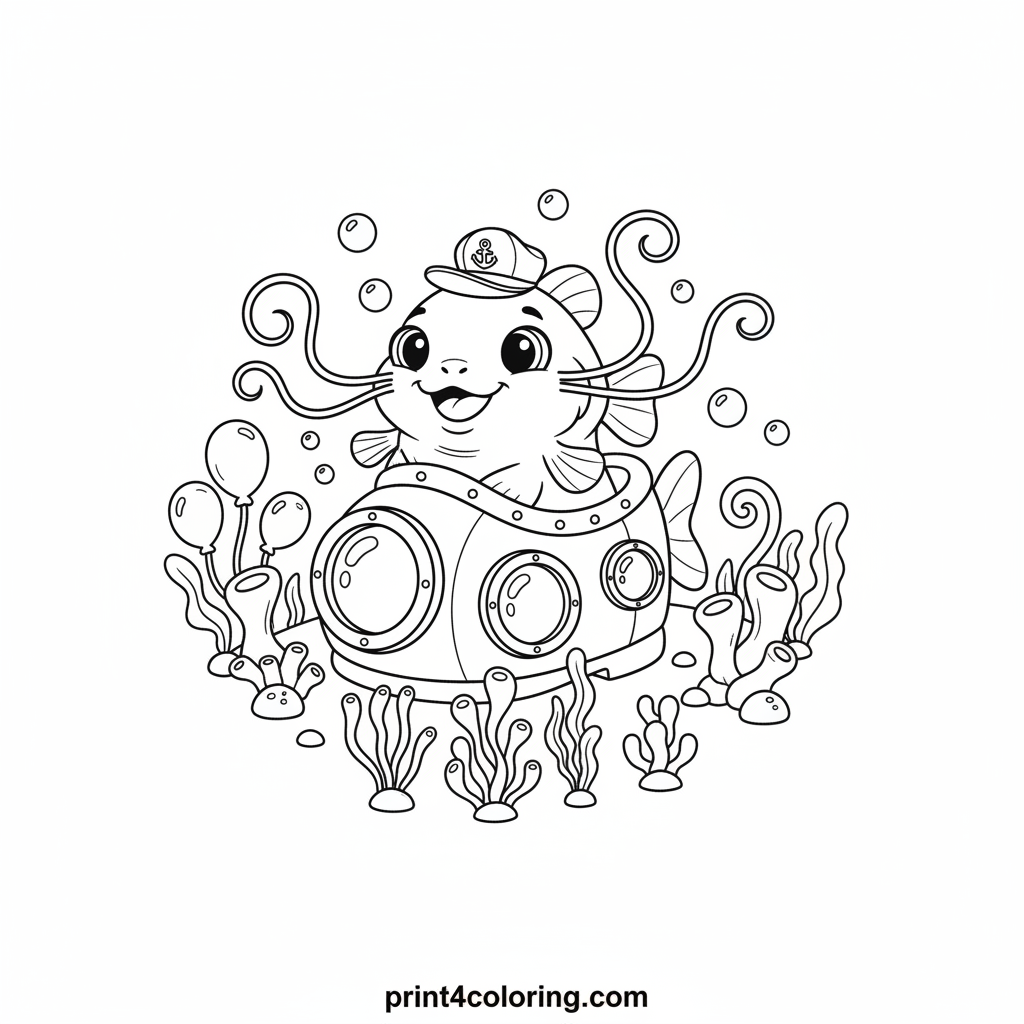 Captain Catfish's Whimsical Submarine Ride Coloring Page