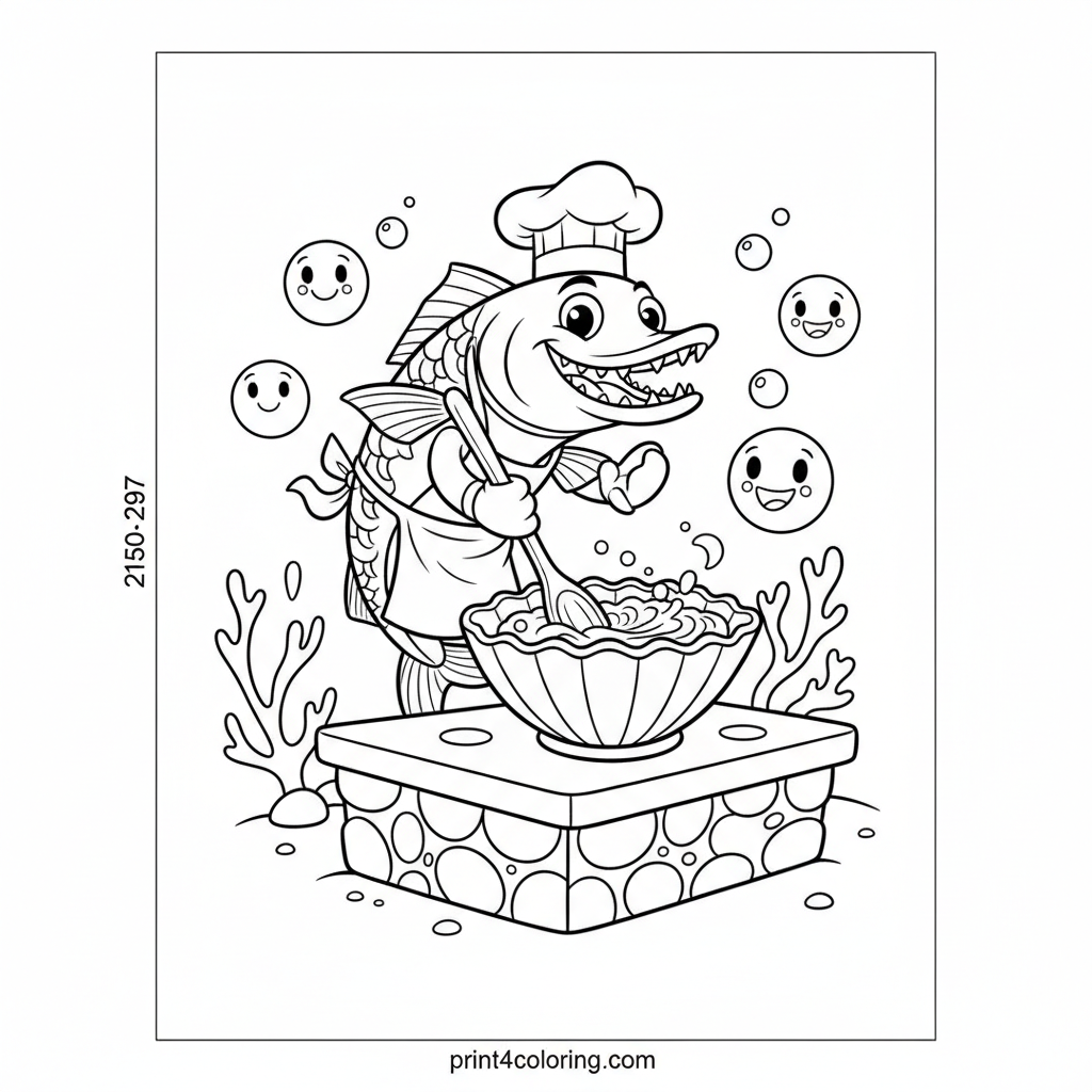Chef Barracuda's Underwater Bake-Off Coloring Page