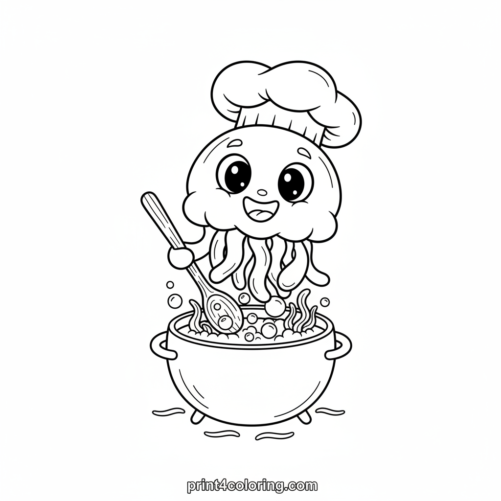 #jellyfish#chef#cooking#underwater#sea-creature#soup#cute#ocean#animals#coloring-page#printable