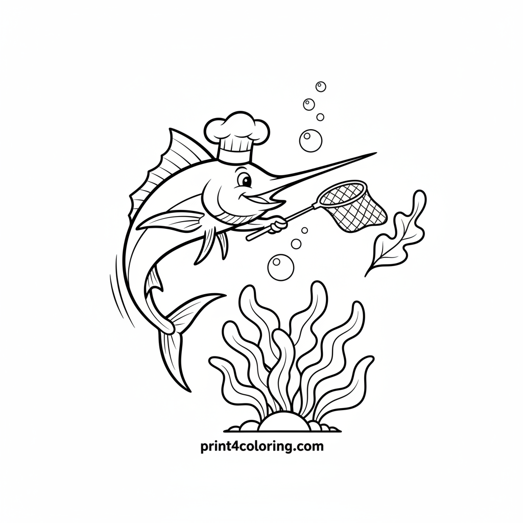 #marlin#chef#underwater#ocean#fantasy#coloring-page#printable