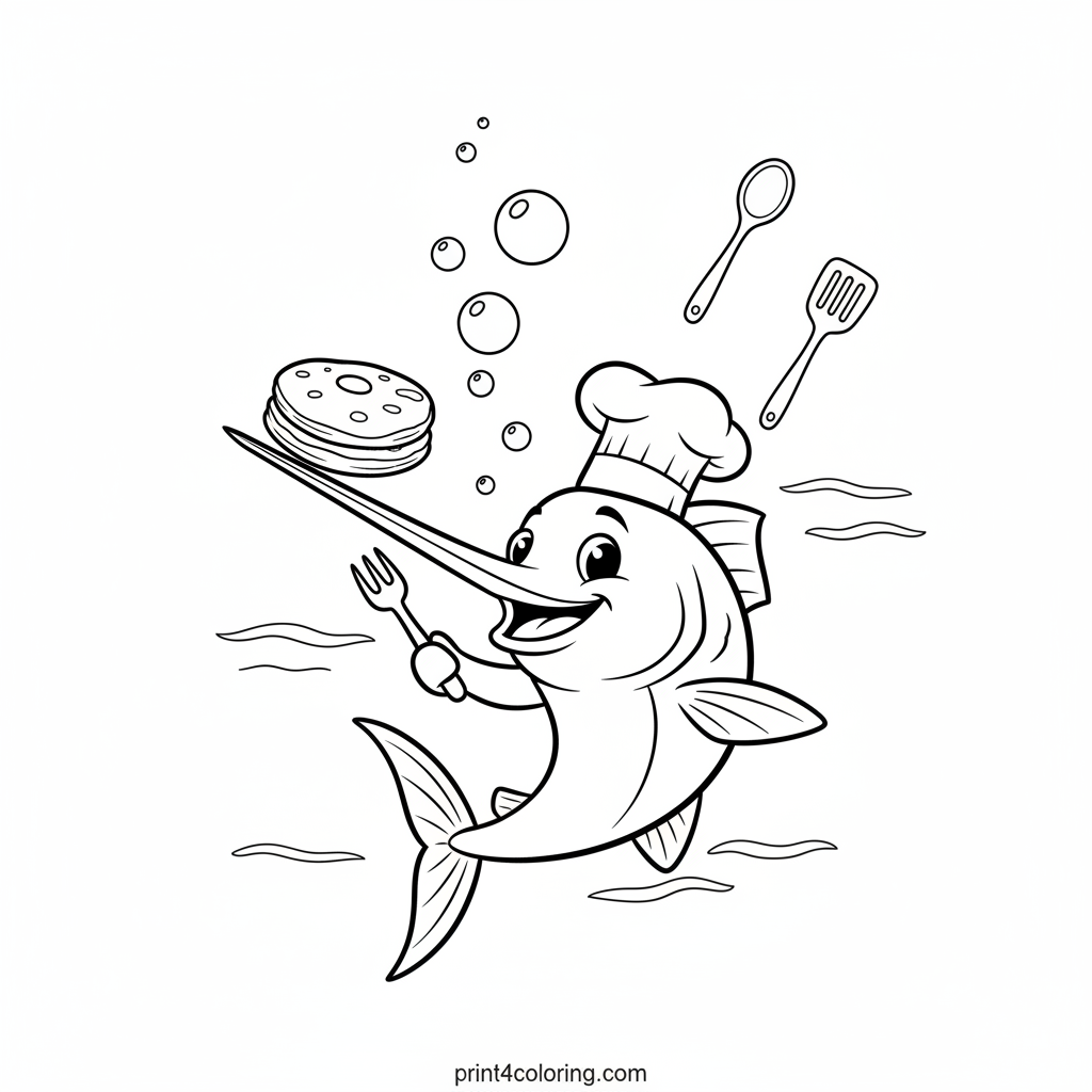 #swordfish#chef#pancake#underwater#ocean#cooking#fish#animals#coloring-page#printable