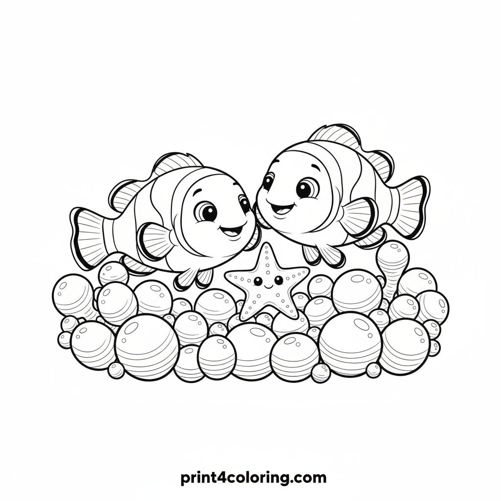 #clownfish#ocean#coral-reef#marine-life#starfish#coloring-page#printable
