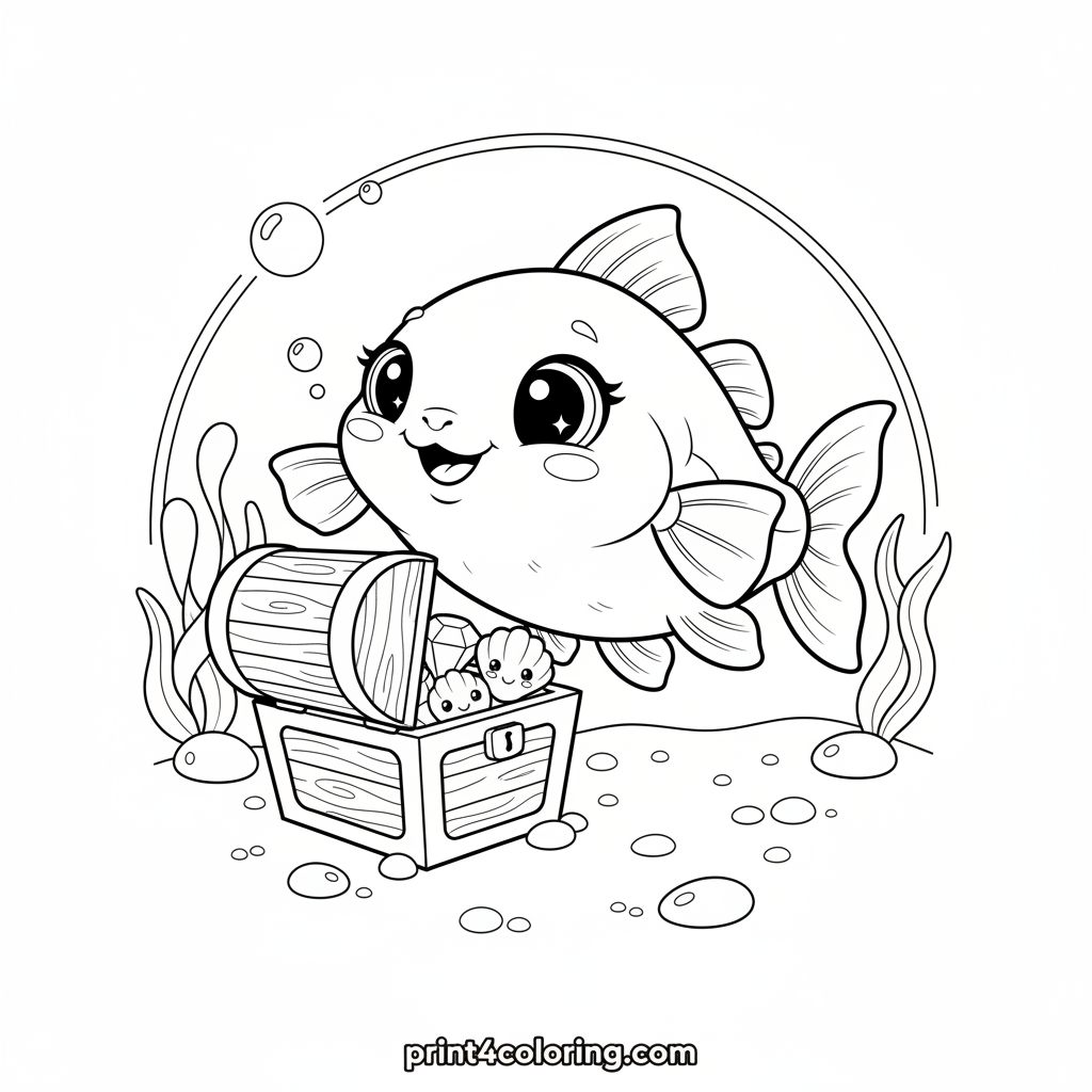 Dive into an underwater adventure with our happy, big-eyed catfish! This adorable creature has found a charming treasure chest at the bottom of a clear lake. What sparkling gems and friendly seashells will you uncover? Grab your colors and bring this cozy aquatic scene to life with vibrant hues and shimmering details!