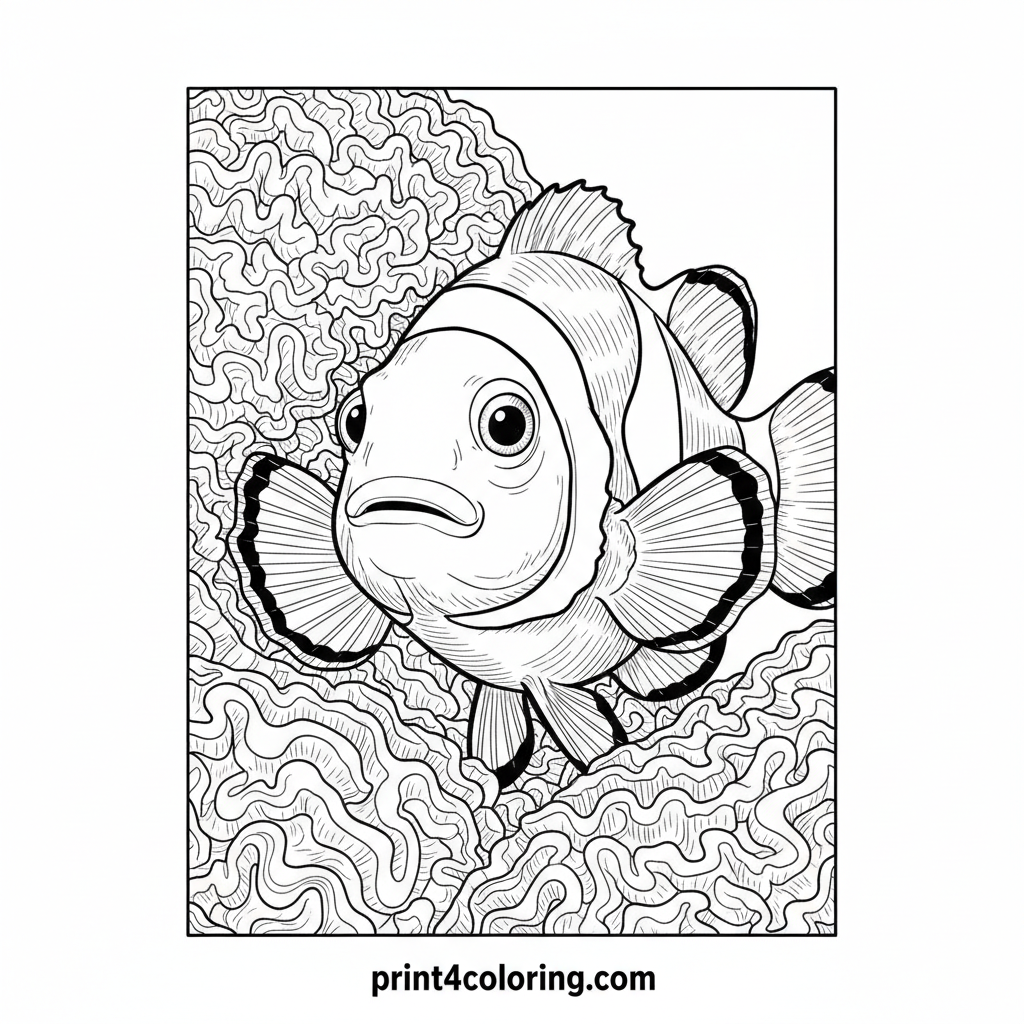 #clownfish#fish#ocean#marine life#coral#underwater#curious#animal#portrait#sea#expert#coloring-page#printable