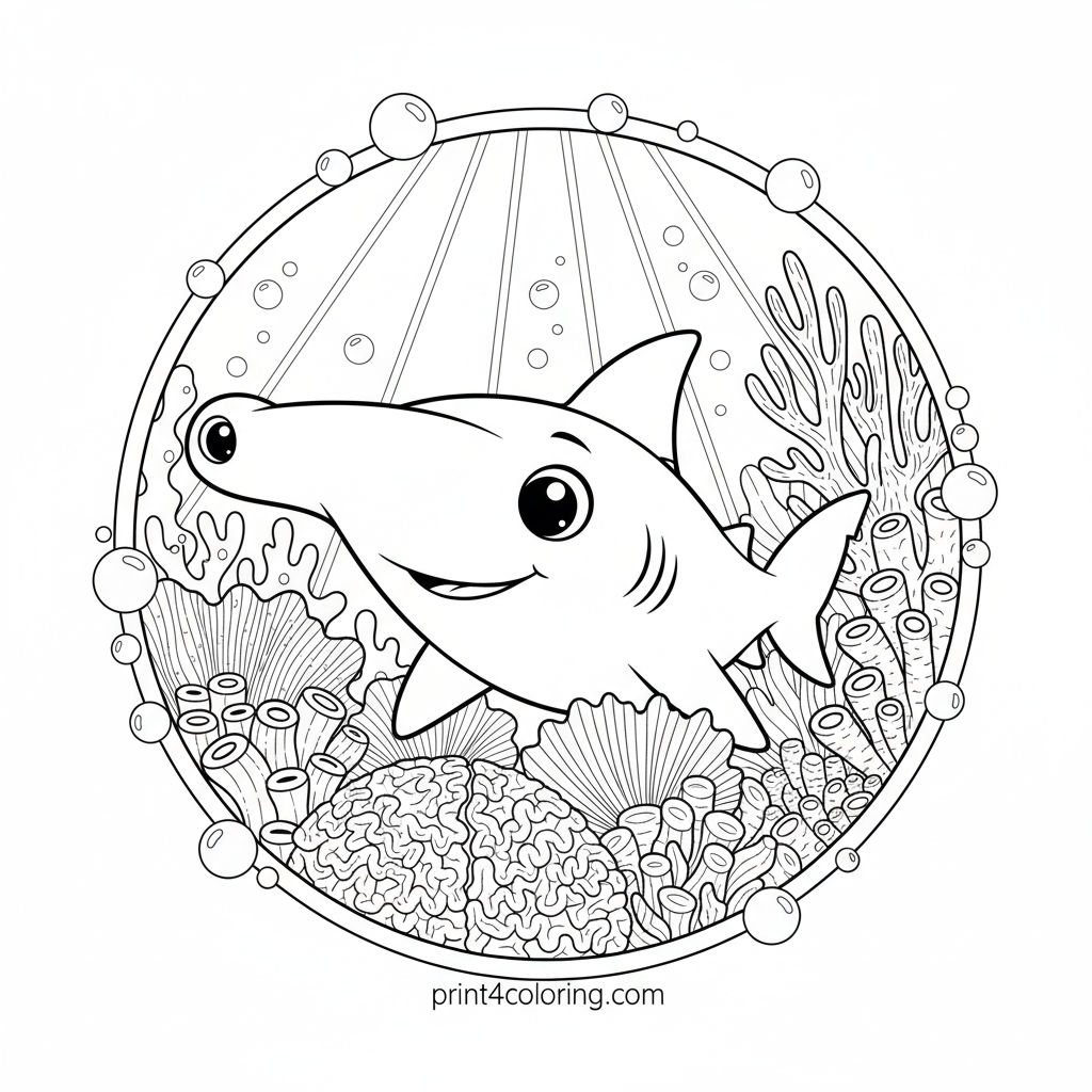 Curious Hammerhead's Coral Kingdom Coloring Page