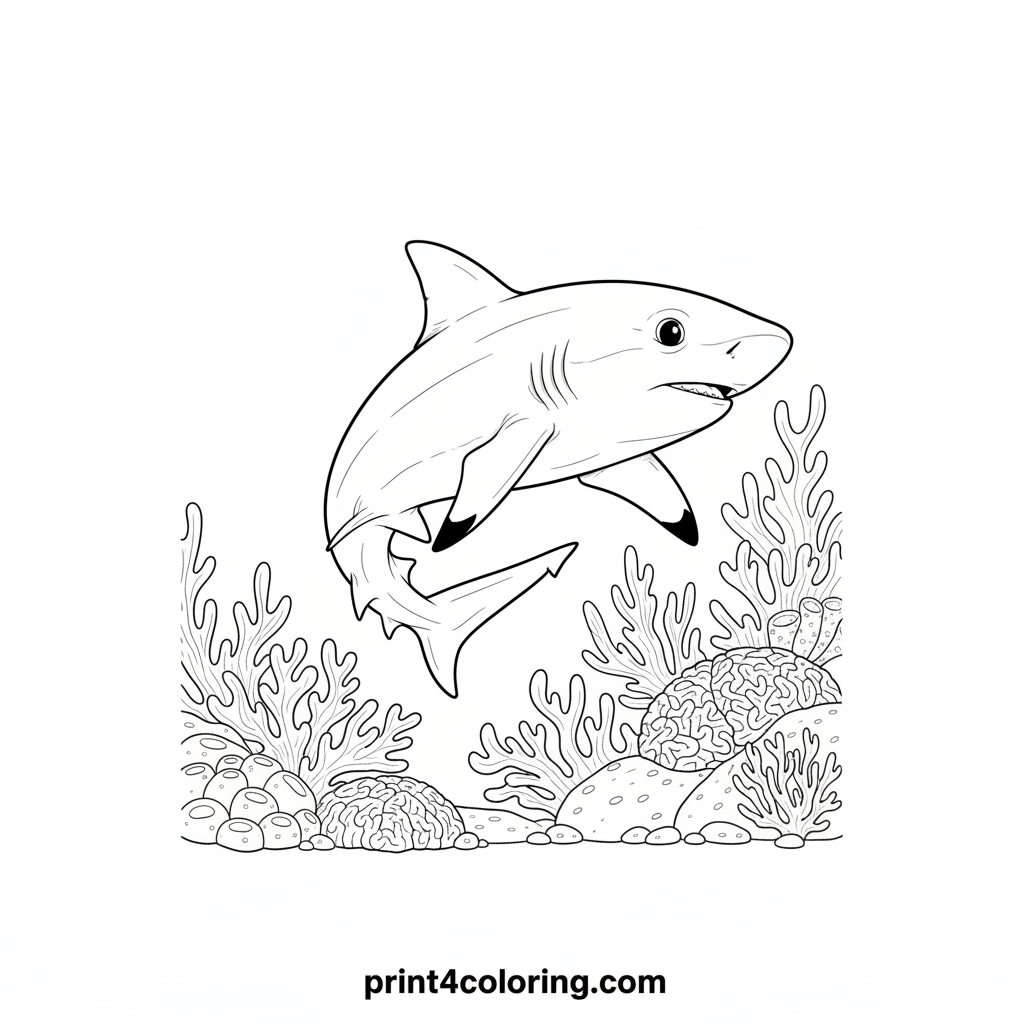 Curious Reef Shark Pup's Coral Garden Coloring Page