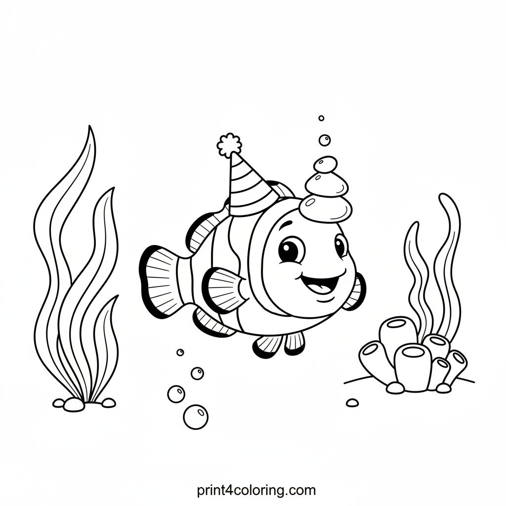 #clownfish#fish#underwater#juggling#ocean#marine life#silly#party hat#pebbles#animals#coloring-page#printable