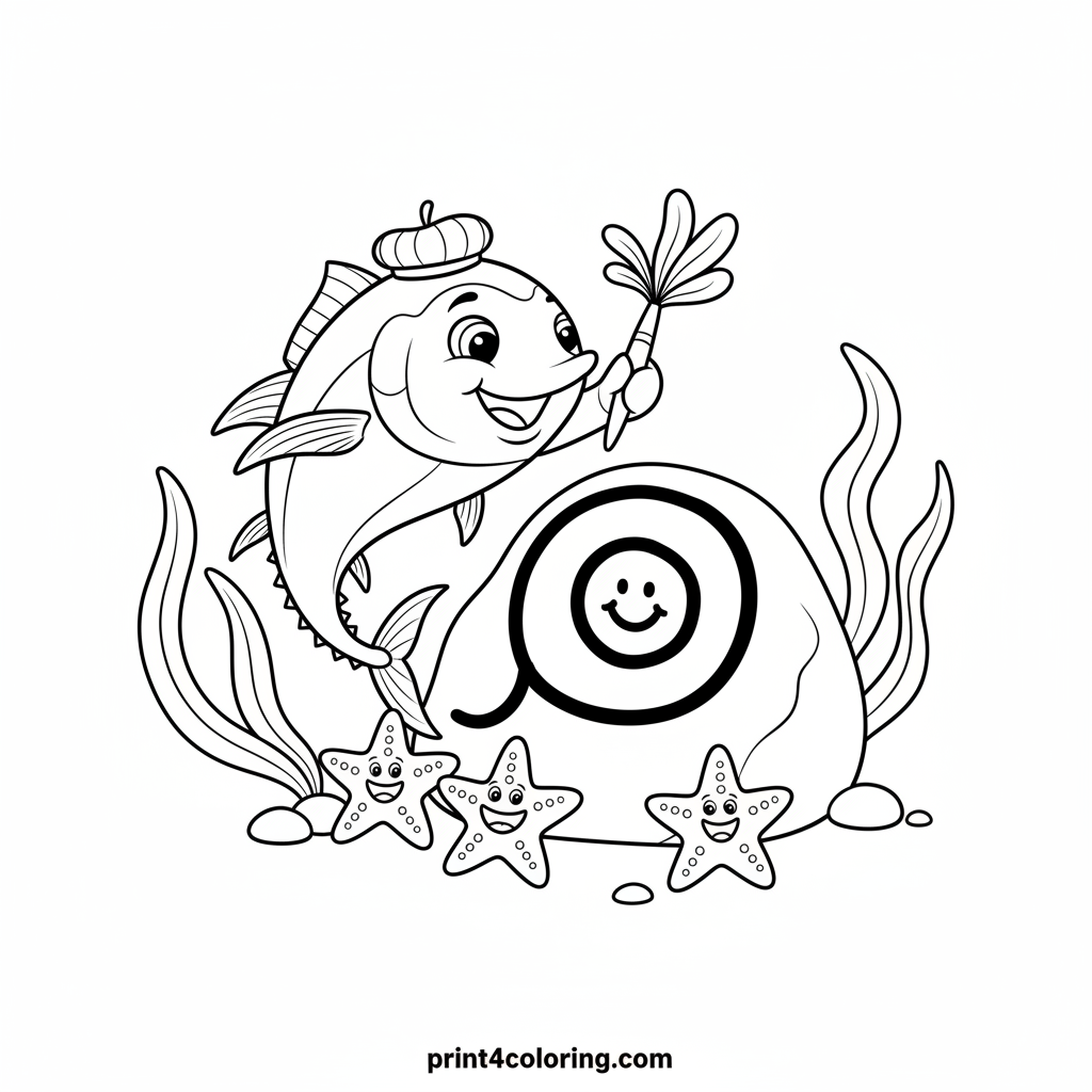 - 4🌈 Masterpiece Magic - Imagine what the tuna is painting! Use your favorite colors to create a vibrant artwork on the rock, maybe a colorful coral reef or a smiling seahorse.