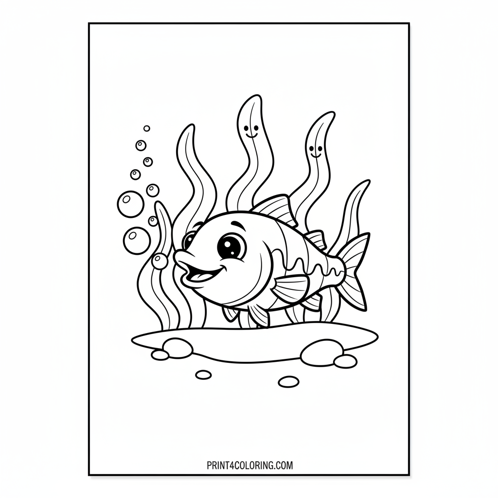 #barracuda#fish#ocean#underwater#bubbles#seaweed#baby-animal#marine-life#cartoon#cute#coloring-page#printable