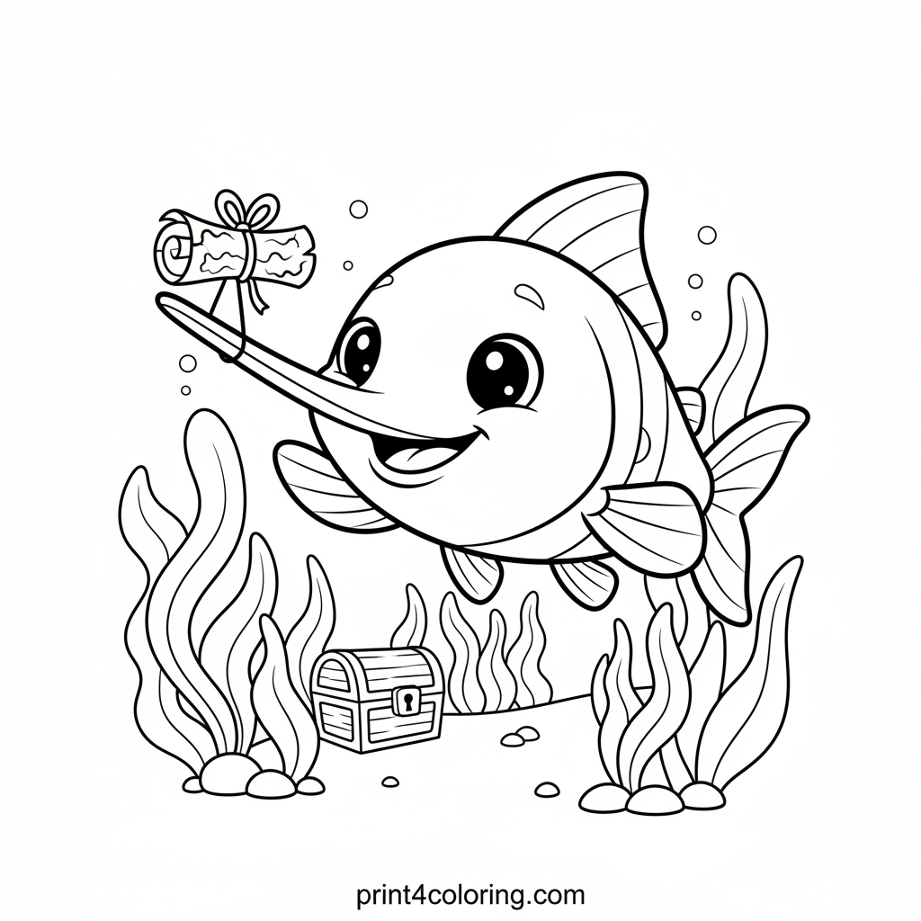 Friendly Swordfish's Treasure Adventure Coloring Page