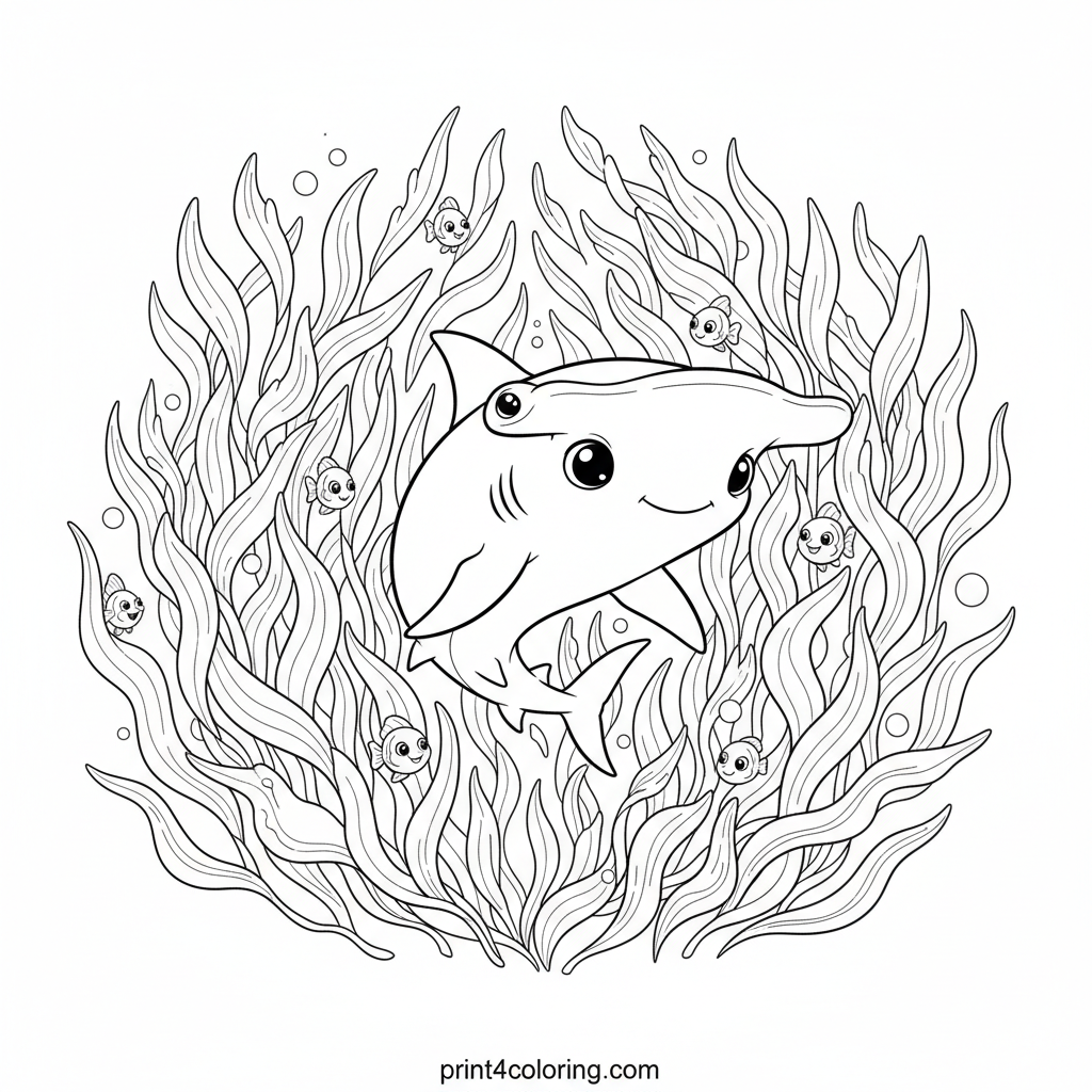 Graceful Hammerhead in the Kelp Forest Coloring Page