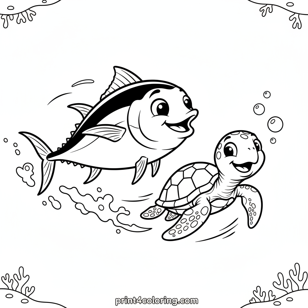 The Great Ocean Dash: Tuna vs. Turtle Race! Coloring Page